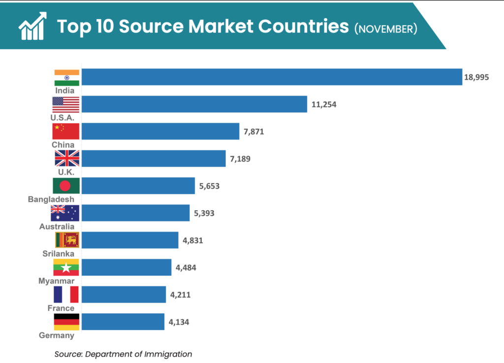 - Top generating markets for October 2025 were India, the USA, the UK, China, and Germany. India remains the largest source of tourists overall.