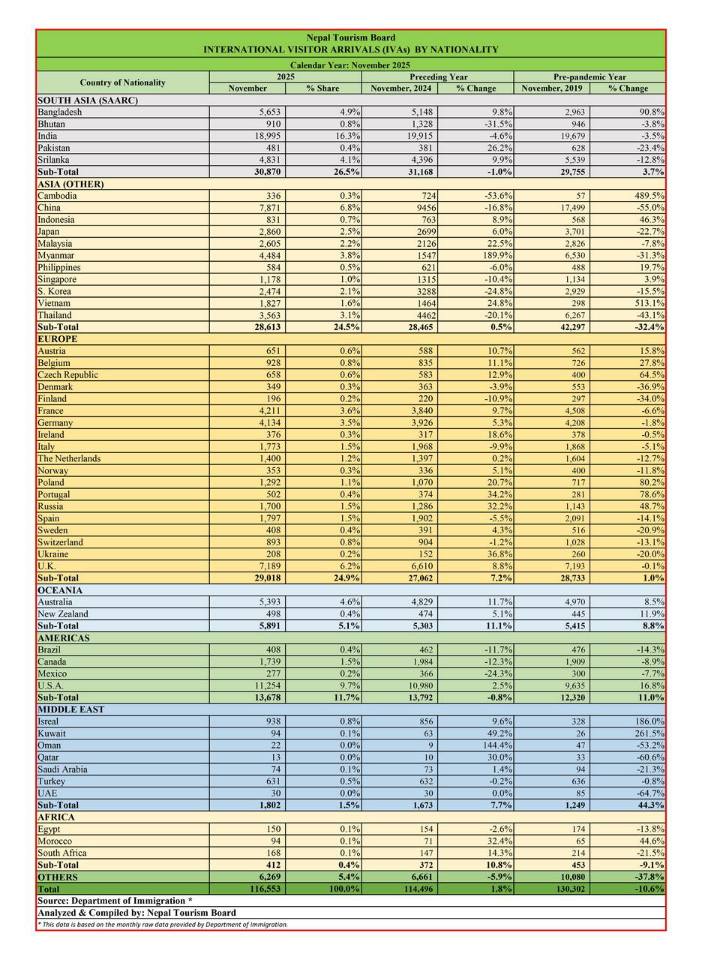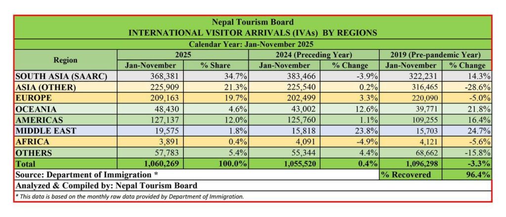 - Authorities are optimistic that Nepal is on track to surpass the one-million-visitor mark again by 2026, signaling a full post-pandemic recovery