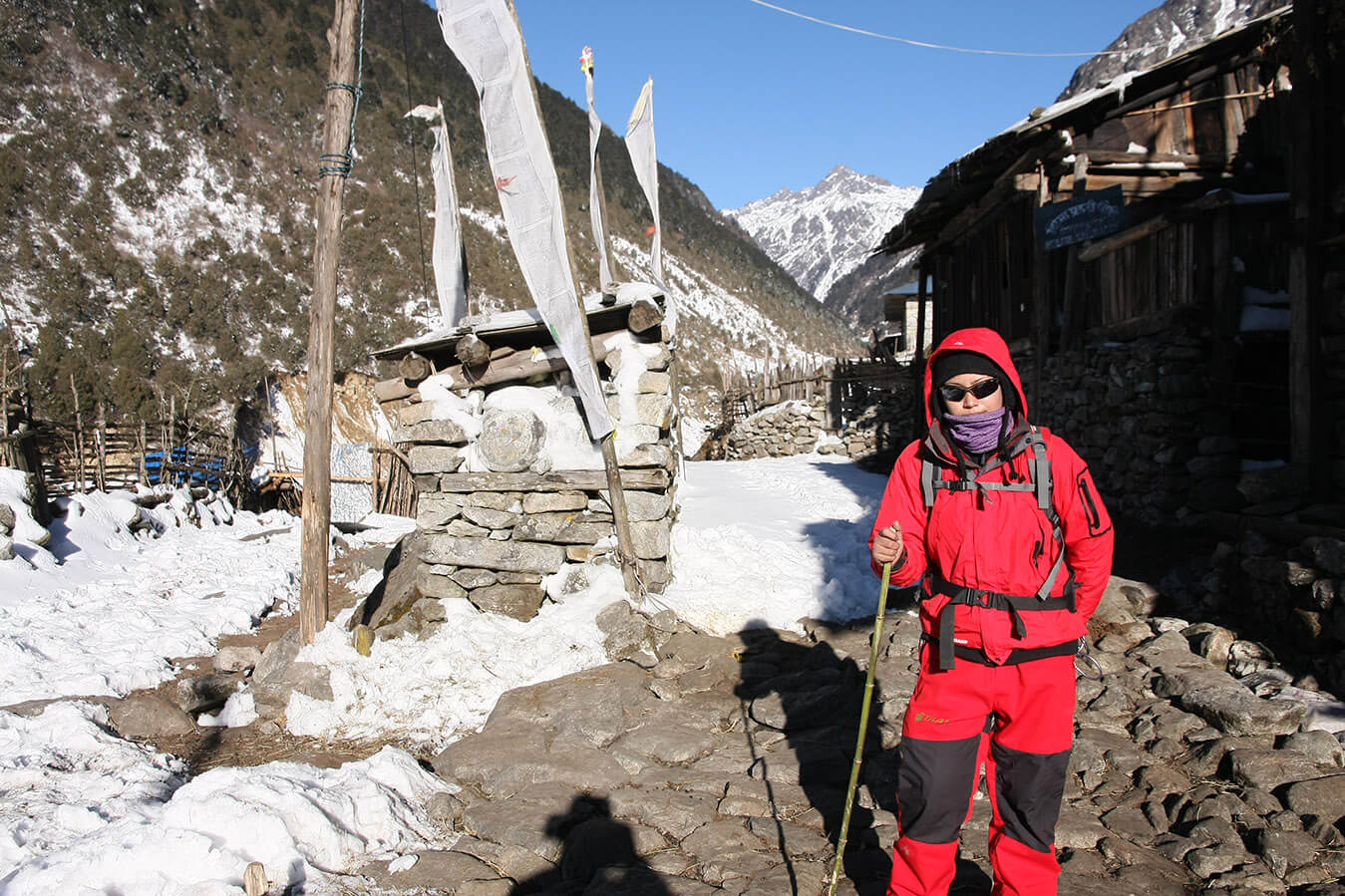 We will trek through complete wilderness where you will see the piles of stones along the way act as signs posts, showing us our direction. We will pass through pine and rhododendron forests. We will reach a place called Jadak (3636m/11929ft) after a walk of two and an half hour. Three hours of walk on snowy track, will take us to our camping site at Upper Langmale (3893m/12772ft). Overnight at tented camp with full board meals.